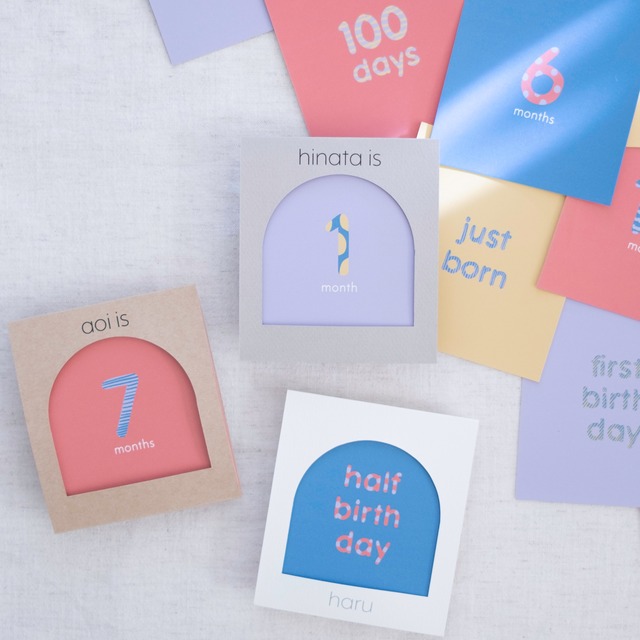 baby monthly card/frame iroiro1 color:C [arch] 【商品内容】 ・マンスリーカード 数字 12枚 (1month〜12months) サイズ:約100mm×114mm ・ネームフレーム 1枚 サイズ:約102mm×115mm カラーは[クラフト][グレー][オフホワイト]の3色 【商品説明】 お名前入りのフレームに、カラフルなマンスリーカードを組み合わせた、毎月の記念撮影にぴったりなセットです。 月齢ごとにカードを入れ替えるだけで、同じフレームで成長の記録を残すことができます。 お子様のお名前が入ることで、世界にひとつだけの特別なアイテムに。 ご自宅用はもちろん、出産祝いのプレゼントにもおすすめです。 記念日カード(オプション)を追加すれば、ニューボーンフォトや100日祝い、ハーフバースデー、1歳誕生日にも活用できます。 形違いや色違いでの追加注文(オプション)も可能なので、双子ちゃんにもぴったりです。 ケーキと一緒に立てて撮影したり、ペーパーフラワーを飾って華やかにするのもおすすめです。 *基本セットは数字12枚・ネームフレームのみです。 記念日カード・フォトフレーム(ウッド)・ペーパーフラワーはオプション商品です。 *ご購入の際に、カートに進み[備考欄]に以下の項目をご記入ください* ネームフレームのお名前/アルファベット・小文字(例:iroha) ◯ネームフレームの形は[アーチ][ふきだし][ホーム][スクエア]の4種類、 カラーは[クラフト][グレー][オフホワイト]の3色です。 ◯マンスリーカード(1〜12の数字のカード)は、[カラーC][カラーD][カラーE]の3色。 背景が色付きの【いろいろ1】・背景が白の【いろいろ2】の2パターンございます。 ・・・・・・・・・・・・・・・・・・・・・・・・・ ・・以下の商品はオプションにて、ご選択ください・・ ●記念日カード 4枚(just born / 100 days / half birthday / first birthday) 500円 ●フォトフレーム (ウッド)1個(198×147mm・スタンド可・ポストカード・2L対応・素材:MDF ポリスチレン) 500円 木目調のおしゃれなフレームです。 クリアな背面はガラスではなくポリスチレン素材のため、お子さまのそばでも安心してご使用いただけます。 ●ペーパーフラワー(12本) 2000円 ご希望のカラーをお選びください ↓色のご確認は以下URLの商品ページでお願いいたします↓ https://shop.marbledeco.jp/categories/6400314 *オプション/フォトフレームとペーパーフラワー2点とも追加した場合は、クリックポストで2便に分けてのお届けになります。 ●マンスリーカード・1セット追加 900円 1セット(数字12枚/ネームフレーム1枚/記念日カード4枚) 形違い・色違いで注文可能です。双子ちゃんにもおすすめです。 フレームマンスリーカードでございましたら、すべての商品からお選びいただけます。 ↓[1セット追加]をご注文ご希望の方は、以下URLのオプションをカートに追加お願いします↓ https://shop.marbledeco.jp/items/116302993 ====== ◎レビュー投稿のお約束◎ ====== === 記念日カード・無料キャンペーン実施中 === 「レビュー投稿のお約束」をして頂けるお客様には、記念日カード 4枚(通常500円)を無料でプレゼント!! ・ご購入の際に、オプション[記念日カード 4枚*レビュー投稿のお約束で無料キャンペーン応募*]を選択し、 カートに進んでください。 *1ヶ月以内に写真提供・レビュー投稿がない場合は、通常料金(手数料込)をご請求させていただきます。 ========================= ★商品発送後の変更はできかねますので、ご記入間違いにご注意ください★ ↓記念日フォトにおすすめのクレイケーキやケーキトッパーも販売しています↓ https://shop.marbledeco.jp/items/all 赤ちゃんのぬいぐるみの身長(頭からおくるみの下まで):33cm ***注意事項*** *お届け場所が北海道・沖縄・離島の方* 配送料は無料です。 ご希望の日にちに配送が可能か確認いたしますので、ご注文前に一度お問い合わせよりご連絡ください。 *パソコンモニターの発色や写真の撮影状況により、実際の商品と多少色味が異なる場合がございます。 *ハンドメイドの商品のため、多少の傷や汚れ・シワ・凹凸などがみられる場合がございます。 *商品は1点ずつ個体差があります。商品画像とは異なる場合がございますことをご了承ください。 *サイズは5mm-1cm程前後する場合がございます。 *ご不明な点がございましたら、お気軽にご連絡ください。 MA0046-01