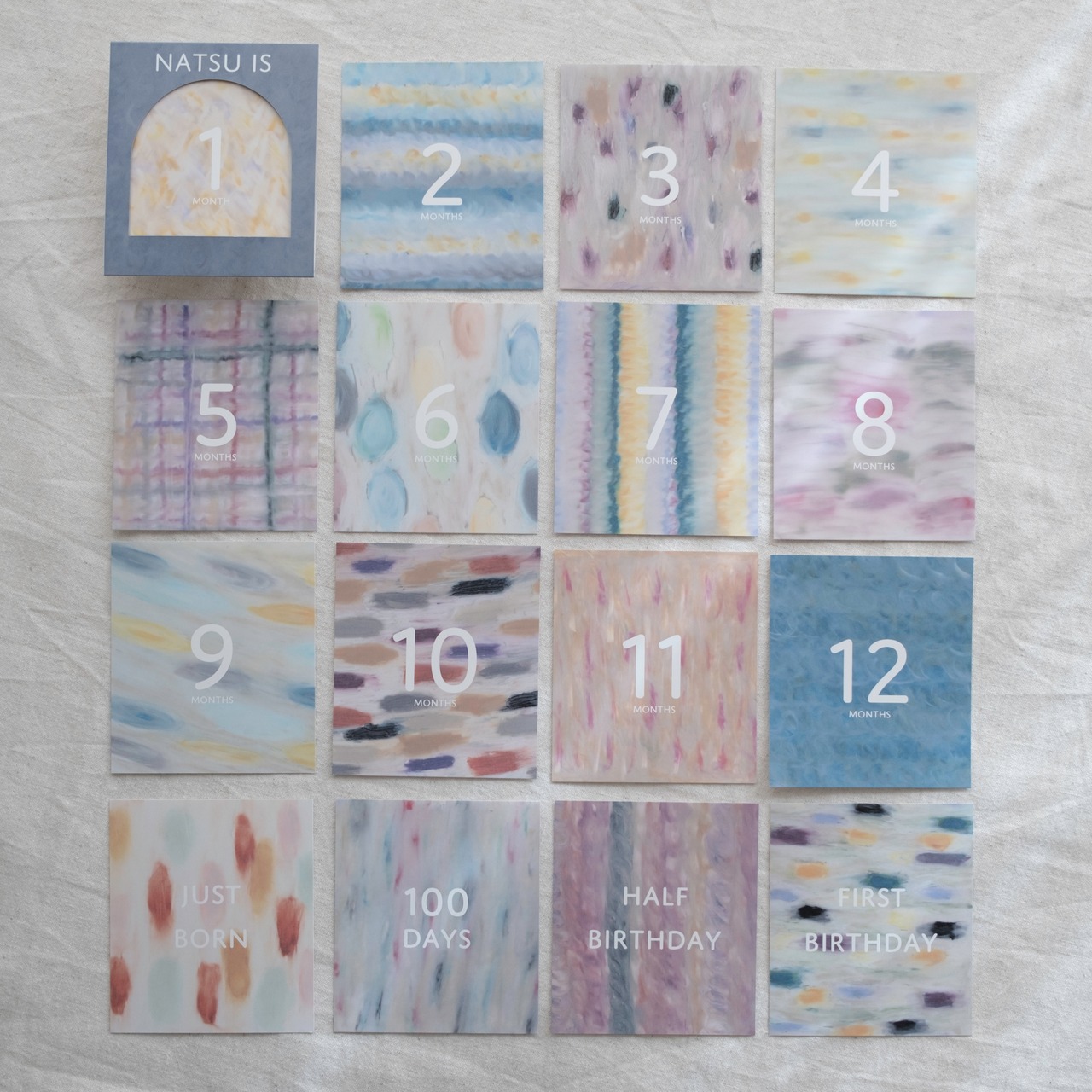 ・記念日カード 4枚(just born / 100 days / half birthday / first birthday)