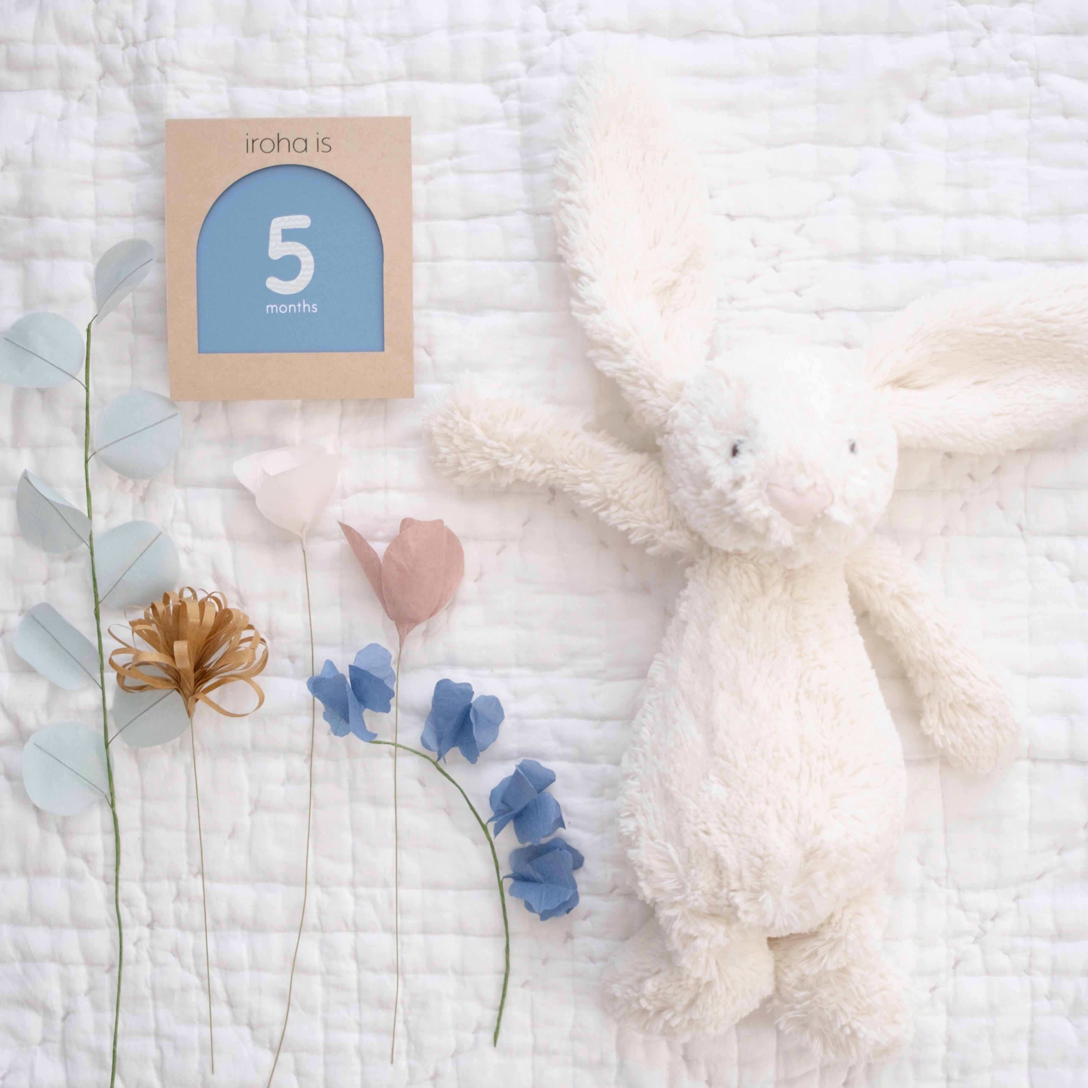 月齢ごとにカードを入れ替えるだけで、同じフレームで成長の記録を残すことができます。