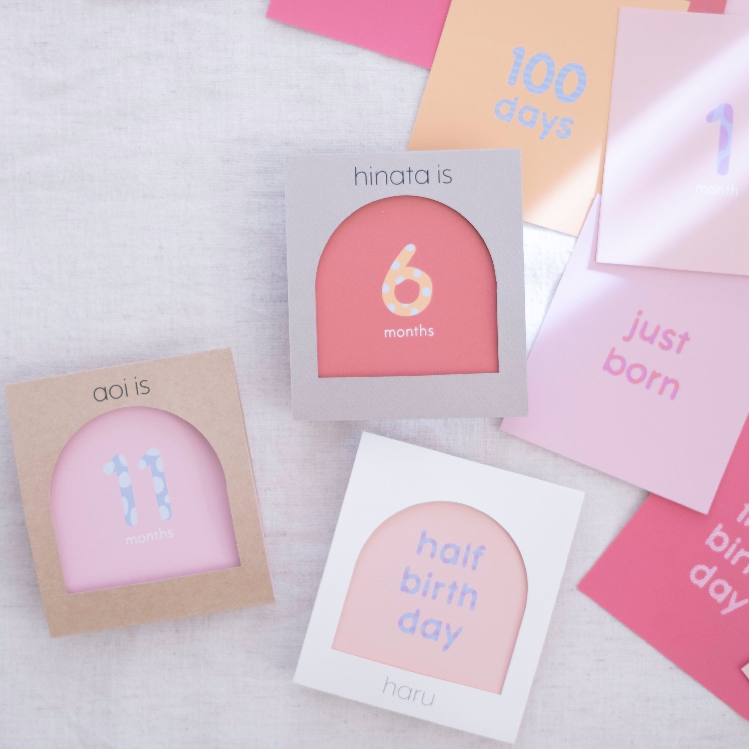 ●記念日カード 4枚(just born / 100 days / half birthday / first birthday) 500円