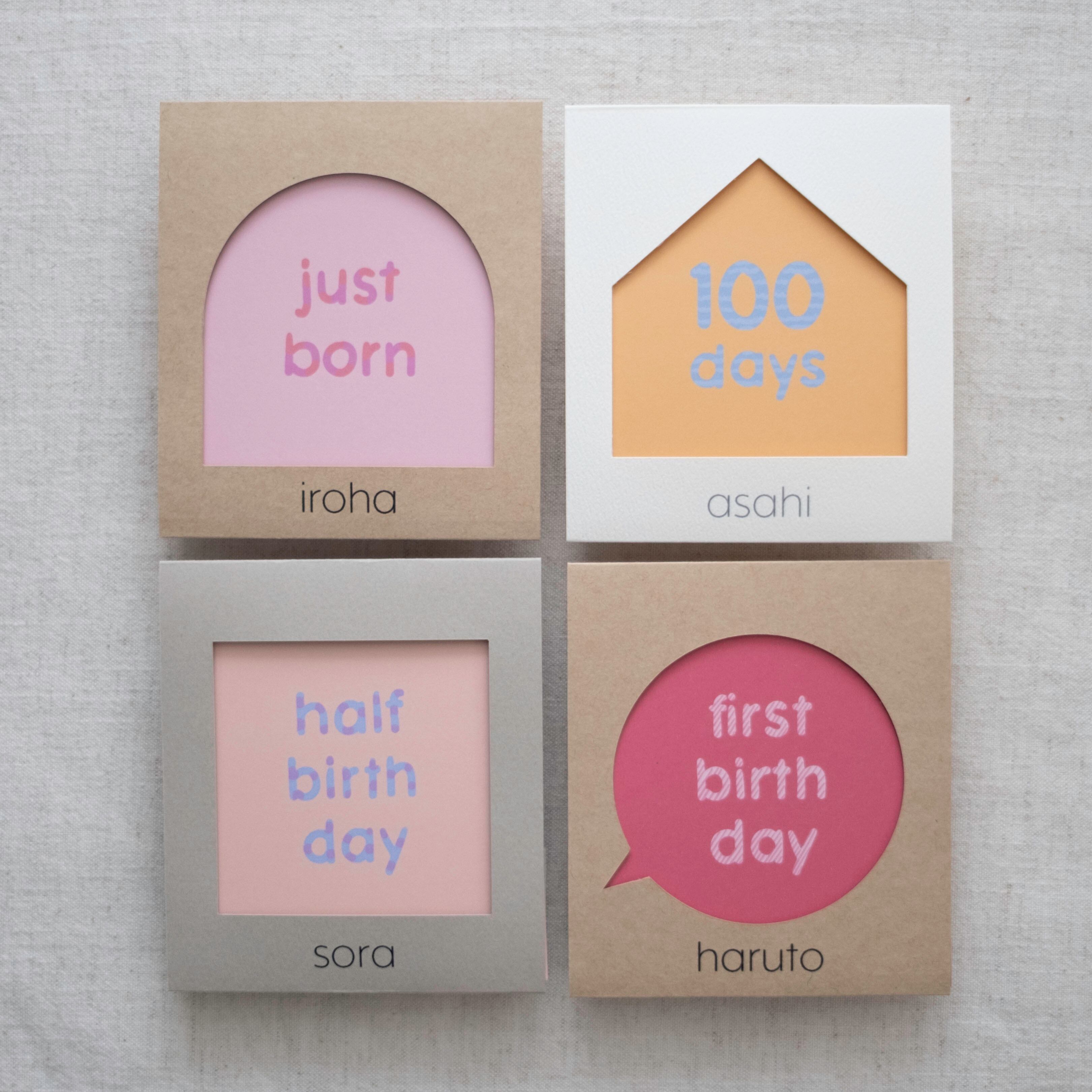 ●記念日カード 4枚(just born / 100 days / half birthday / first birthday) 500円