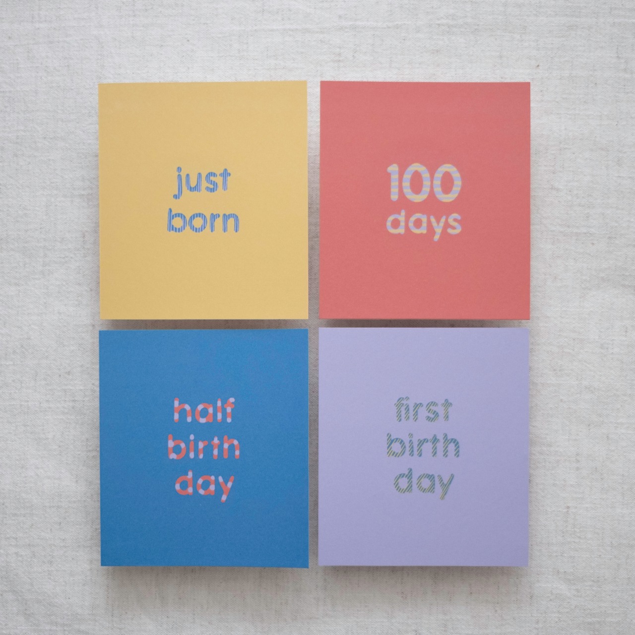 ●記念日カード 4枚(just born / 100 days / half birthday / first birthday) 500円
