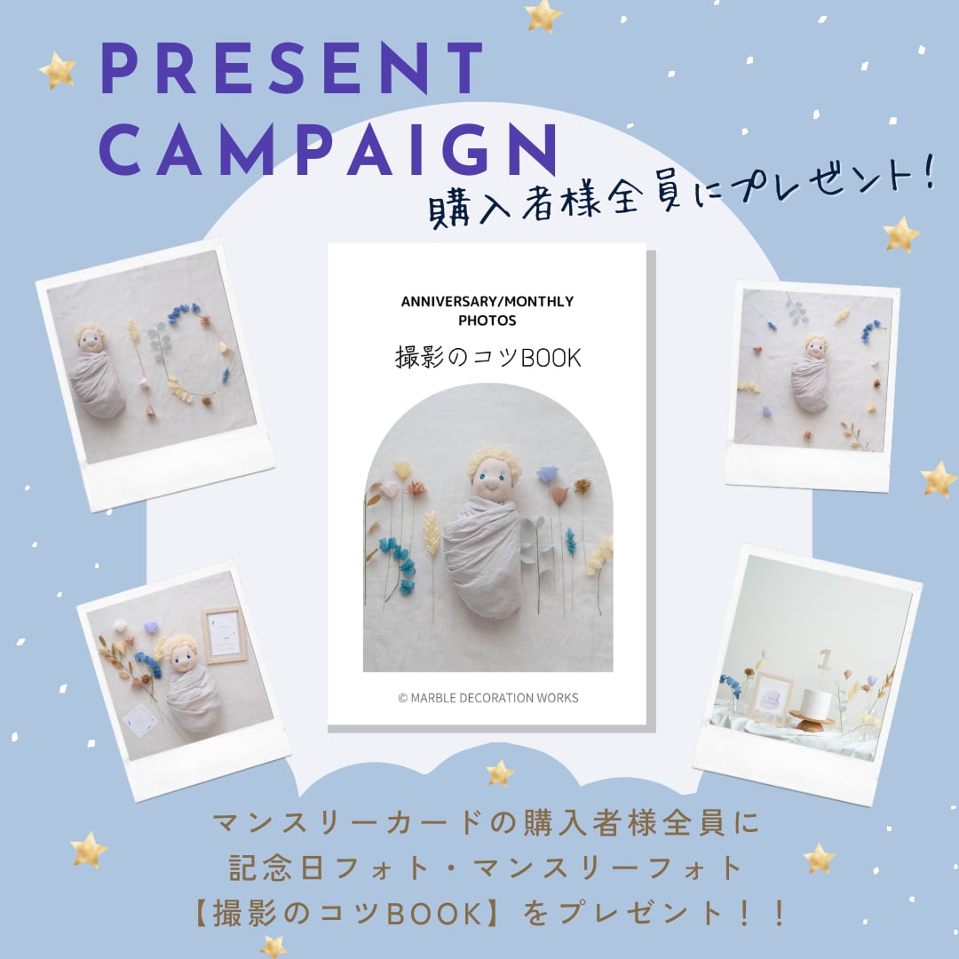 オプションで記念日カードを追加すると、毎月の月齢フォトの撮影以外にも、ニューボーンフォト・100日祝い(お食い初め)・ハーフバースデー・1歳誕生日の記念日フォトの撮影にも使えます。