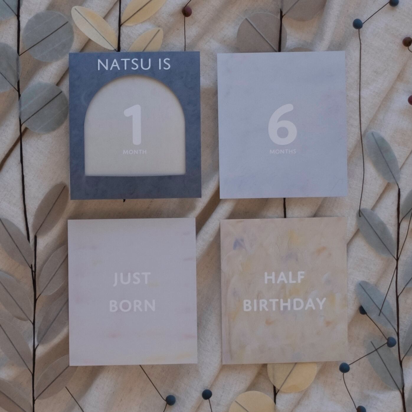 ●記念日カード 4枚(just born / 100 days / half birthday / first birthday) 500円